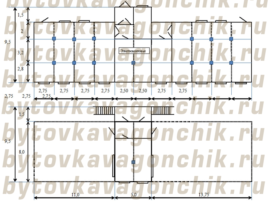 Блок-модуль «Командный пункт управления», размер 29,75*9,5*2,8м состоит из: